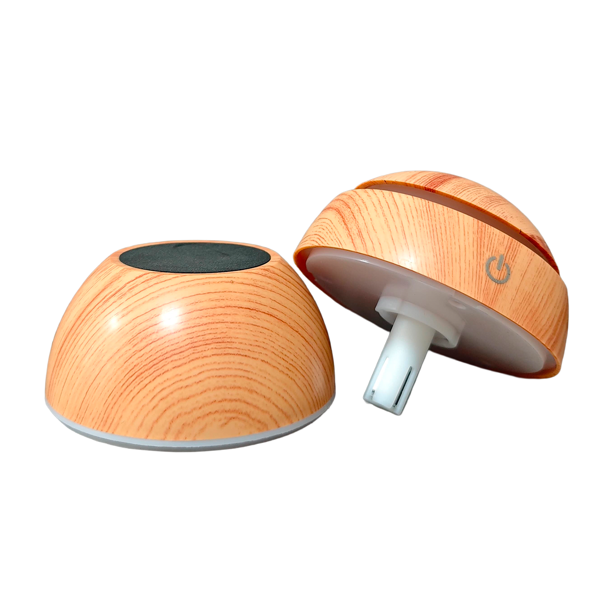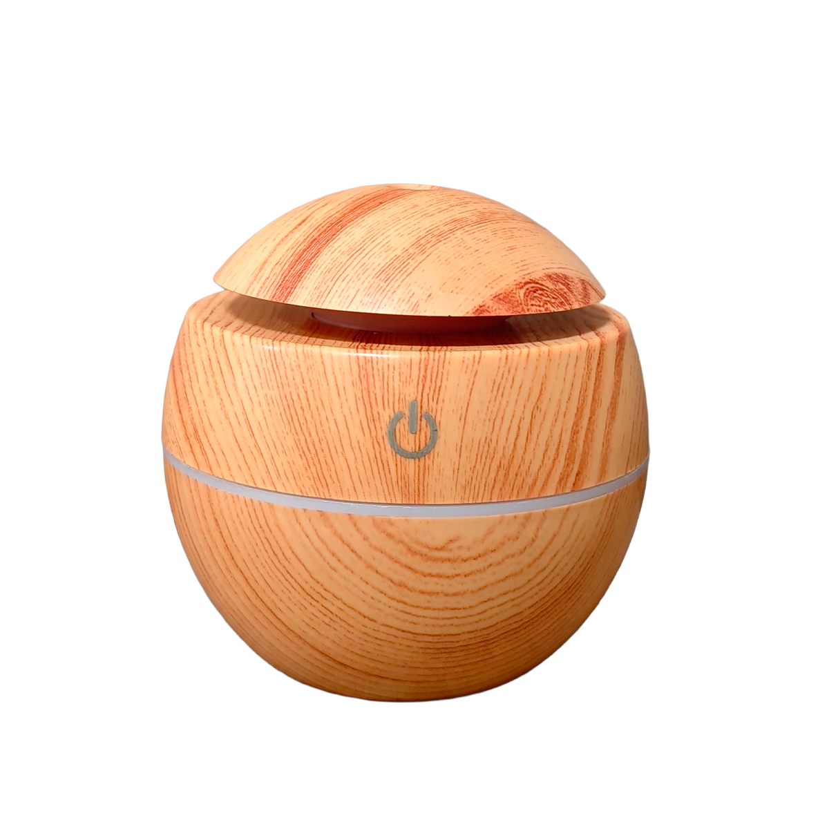 El humidificador Bola efecto madera clara destaca por su diseño natural, elegante y minimalista. Inspirado en materiales nobles, su acabado imita la madera clara con gran realismo, convirtiéndolo en un complemento decorativo ideal para hogares con estética nórdica, zen o escandinava. Su forma redondeada y tamaño compacto lo hacen perfecto para mesitas de noche, estanterías o escritorios.